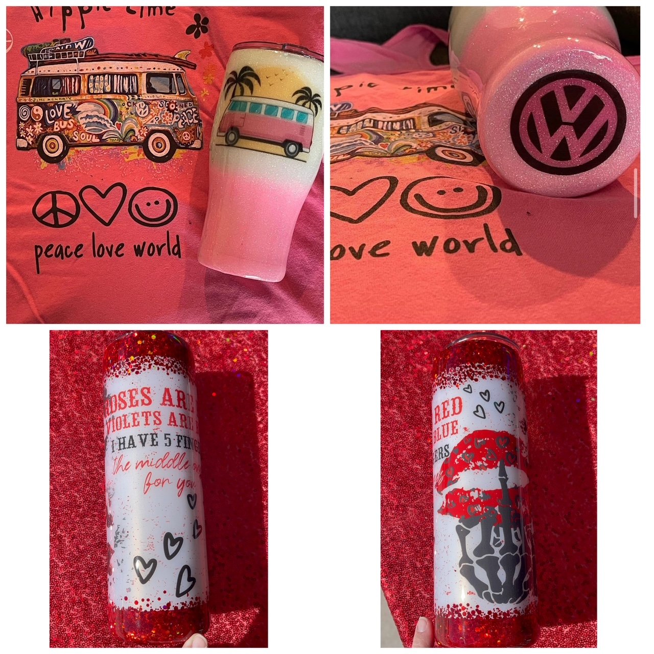 Made with Glitter and Resin. Choose from a variety of glitter and resin colors. They can be made with chunky and/or fine glitter. Your design/logo is protected in Resin to make your cup shine. Let us know what you are looking for and we will do our best to make it happen! Please allow 3-5 days for production and 3-7 days for shipping. Expect possible delays between the months of April-September due to fire season. Let us know what you are looking for and we will do our best to make it happen!